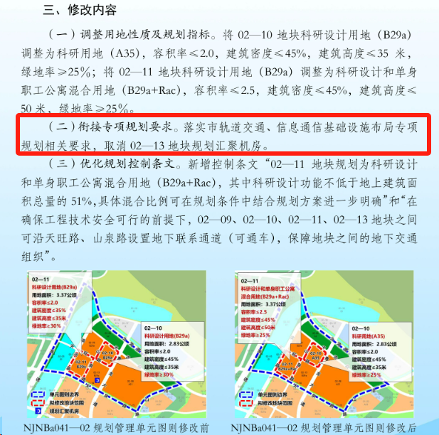 在文件中的第二项里表明:落实市轨道交通、信息通信基础设施布局专项规划相关要求,取消 02-13 地块规划汇聚机房。